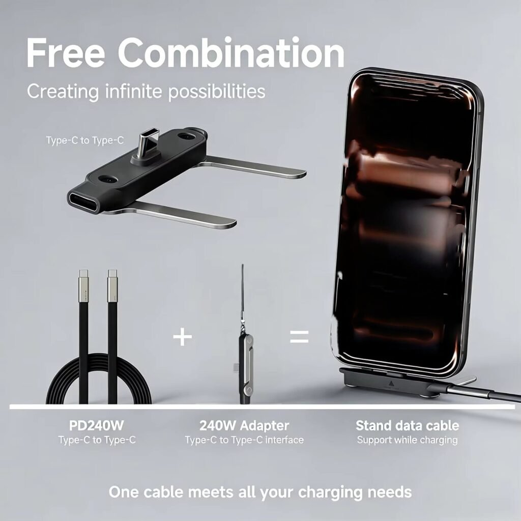 1 × 240W USB-C Fast Charging Cable with Built-in Phone Stand · Single item packaging · 17 × 8 × 3 cm box